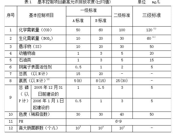 根據(jù)城鎮(zhèn)污水處理廠排入地表水域環(huán)境功能和保護目標,以及污水處理廠的處理工藝,將基本控制項目的常規(guī)污染物標準值分為一級標準、二級標準、三級標準,一級標準分為A標準和B標準.一類重金屬污染物和選擇控制指標不分級.
