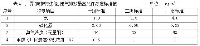 城鎮(zhèn)污水處理廠廢氣的排放標準值按表4的規(guī)定執(zhí)行。